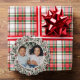 Classic Floral Frame Photo Christmas | Beige Ornament Card