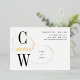 Announce your wedding date and location in chic classic style with these sleek save the date cards featuring your initials in elegant black lettering, joined by an ornate swooping "and" in gold foil with "save the date" worked into the design. Your names, wedding date, location and additional details are aligned at the upper right.