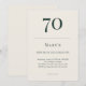 Deep forest green and linen cream birthday invitation featuring classic minimalist typography. Designed for a refined 70th celebration with customizable name age date time location and RSVP details.
