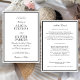 Simple elegant traditional black and white trendy all in one wedding invitation with black frame, vintage typography and calligraphy script, and guest information to RSVP online, website address, accommodation, and direction details.