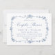 Elegant French victorian blue floral couples shower invitation with custom text on the back.