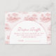 Celebrate a timeless and romantic baby shower with this elegant pink toile design, featuring delicate vintage countryside illustrations in soft blush tones. The refined arch layout creates a beautiful focal point for your event details, blending classic European charm with a modern, feminine aesthetic. Perfect for a chic, storybook-inspired celebration, this design feels both graceful and effortlessly sophisticated—ideal for creating a memorable and stylish gathering.