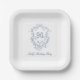 Classic French Victorian blue floral crest birthday paper plate for any age. For more advanced customization of this design, please click the DESIGN TOOL BUTTON above!