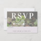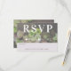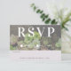 RSVP Enclosure Card featuring delicate florals on a dark wood background.