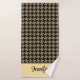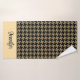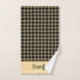 Personalized bath towel set with a template to add your name at the bottom of the towel in a black script, on a cream background. Above this is a golden brown and black classic nailhead pattern to give a professional and elegant look.