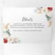 This classic gold burgundy floral trifold wedding invitation is perfect for a rustic wedding. The design features watercolor white, burgundy and gold flowers and berries with green foliage arranged into elegant bouquets.