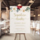 This classic gold floral signature drinks sign is perfect for a rustic wedding. The design features watercolor white, burgundy and gold flowers and berries with green foliage arranged into elegant bouquets.
