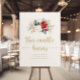 This classic gold floral candle burns sign is perfect for a rustic wedding. The design features watercolor white, burgundy and gold flowers and berries with green foliage arranged into elegant bouquets.