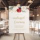 This classic gold floral unplugged ceremony sign is perfect for a rustic wedding or bridal shower. The design features watercolor white, burgundy and gold flowers and berries with green foliage arranged into elegant bouquets.