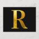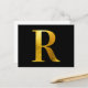 Monogrammed initial R wedding postcards for with a faux yellow gold brushed metallic foil. Letter R. Monogram R.
