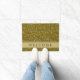 An elegant gold glitter welcome door mat to invite your guests in style. The faux gold glitter look doormat has a gold band with the welcome words ,that you can customize ,to make it unique and special.