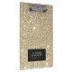 Coordinates with the Classic Gold Glitter Makeup Artist Business Card Template by 1201AM. A classic styling of your name or business name is set on a faux gold glitter background on this personalized clipboard. © 1201AM Design Studio
