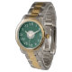 Very good quality watch that looks good whether dressing up or down. The band is sturdy. The watch is rather large so might not work for smaller folks. Recommended as a good gift. Printing is just a touch light but adds a nice touch of personalization.