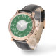 Has heft and feel of expensive stainless steel quartz watches. Good band with safety catch. I removed links, which is easy because engraved arrows show direction to push the linking pins. As always by this seller, the image (a railroad logo) is a perfect reproduction of my emailed image, and is precisely spaced and aligned.