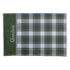 Stylish plaid pillow case with the traditional blue, green, yellow, black, and white Gordon Dress Tartan pattern. A green and white hem, on the end of the case, has white custom text, on the front of the pillow. Personalize the text to read what you want.