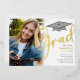 Celebrate your milestone with this graduation gold foil graduate photo invitation template, perfect for high school or college seniors. Featuring a simple grad cap party invite design, this traditional announcement blends an elegant calligraphy script with a trendy typography design for a timeless and stylish look. The minimalist classy layout highlights your senior photography style, making it a sophisticated and personalized way to invite loved ones to your class of celebration.