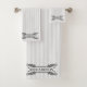 Classic Gray Acanthus Leaf Monogram Elegant Stripe Bath Towel Set