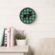 Classic Green Dark Blue Lumberjack Plaid Pattern Clock