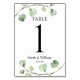 A classic green eucalyptus sprig wedding table number card that can be customized with any table number. The graphics appear on both sides of this card.