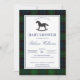 Classic green plaid rocking horse baby shower invitation
