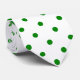 Polka dots! One of the classic apparel patterns that looks great on ties. This polka dot necktie features small green dots on white.