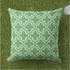 A classic outdoor pillow featuring a white quatrefoil trellis pattern on a green background. The moroccan-inspired lattice design brings calm, natural geometric texture to patio furniture, garden benches, or porch seating. A soothing accent that blends effortlessly with greenery and earth-toned outdoor decor.