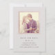 Simple, chic, and feminine; this save the date design uses soft grey and neutral colors, with a shimmery faux rose gold border, to set a romantic tone. Minimal typography ensures guests know that the wedding will be formal, while providing all details through the wedding website.