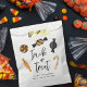 Cute Halloween design features watercolor illustrations of wrapped candies surrounding "trick or treat" in hand sketched script lettering. Personalize with your choice of text beneath.