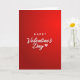 This Valentine's Day card features a rich red background that fades from a brighter red near the center to deeper red around the edges. The words “Happy Valentine’s Day” sit right in the middle in white lettering, so they’re the first thing you notice. “HAPPY” is in all caps with simple, straight letters, while “Valentine’s Day” is written in a flowing, handwritten look. A small soft pink heart acts like the apostrophe in “Valentine’s,” adding a sweet detail without taking over the design ❤️. The white text has a faint shadow that helps it stand out and gives the message a little depth. With no characters or extra objects, the card keeps the focus on the message and the warm feeling behind it. It’s meaningful to give because it says what you feel in a direct, caring way that works for a partner or a close friend 🥰.