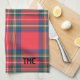 Classic Holiday Red Tartan Plaid INITIALS Festive Kitchen Towel