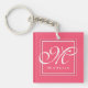 NewParkLane - Elegant, classic personalized keychain, with a frame for your name and monogram in elegant script typography, against a hot pink background.