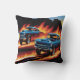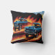 Two vintage hot rods speed past, blazing trails of fire as the sun sets, creating a thrilling moment of automotive glory and power.