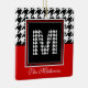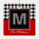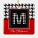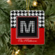 Classic Houndstooth Pattern Monogram Red and Black Ceramic Ornament