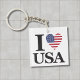 Carry your patriotism with you everywhere with our Classic "I ❤️ USA" Statement Keychain. This durable and lightweight keychain features the universally recognized "I" and "USA" in bold black lettering, with the iconic heart symbol cleverly designed to showcase the Stars and Stripes of the American flag. It's a simple yet powerful declaration of your love for the United States, perfect for organizing your keys or adding a touch of national pride to your bag or backpack. An ideal gift for friends, family, or anyone who cherishes American values, this keychain is a constant reminder of the spirit of the USA.