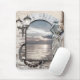 Personalized mouse pad with a nautical theme, featuring a coastal scene framed by a Roman arch design with angel, lanterns and anchor. Beautiful for creative inspiration while working on the computer.