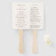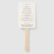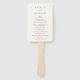 Elegant wedding program hand fan featuring traditional serif fonts in a simple layout.