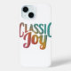 This vibrant t-shirt features the phrase "Classic Joy" in a bold, multicolored font, surrounded by retro-inspired shapes and patterns. The design evokes a sense of nostalgia and childhood wonder, celebrating timeless moments of happiness.