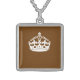 Classic Keep Calm Crown on Chocolate Brown Sterling Silver Necklace