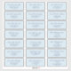 These classic light blue wedding guest address labels are perfect for a spring wedding. The modern romantic design features classic navy blue typography on a light blue background. 21 labels per sheet. Add each sheet that you need to your cart individually. Each individual label is about 2" x 4" (may be slightly smaller). These invitation addressing labels are perfect for wedding invitation guest addressing, save the dates, thank you cards, bridal showers, baby showers, Christmas cards, and more.