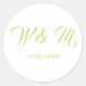 The perfect stickers for your project needs, this item features a white and lime green color motive. With lime green font written on a white background, the couple's initials are in the center with the wedding date underneath. Choose from various shapes. Personalize yours today!