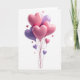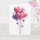 This greeting card shows a cluster of heart-shaped balloons floating upward on a plain white background. Most of the balloons are soft pink with a few in light lavender, and they look shiny with gentle light reflections that make them feel rounded. Around the main group, a handful of smaller heart shapes drift nearby, like little hearts caught in the air. Thin red strings hang down from some balloons, curving and crossing as they fall toward the bottom of the card. There’s no character face here, but the floating hearts still feel full of affection and closeness, like a quiet way to say “I’m thinking of you.” There isn’t any printed message visible on the front, so the heart design does all the talking in a simple, sweet way 🥰. It’s a meaningful card to give because it fits romance or friendship without needing many words ❤️, and it’s perfect for sharing Valentine’s Day feelings with someone you care about.