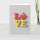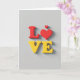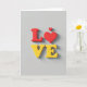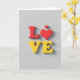This card shows the word “LOVE” in big, rounded 3D letters that look slightly raised off the page. The “L” and the heart-shaped “O” are a deep red, while the “V” and “E” are a warm yellow. A small red heart floats just above the heart-shaped “O,” like a little extra note of care. The background is a simple light gray, and each letter has a soft shadow underneath that adds depth. The text is centered on the front, and the letters are thick and smooth rather than thin or curly. It feels meaningful because it says what you want to say right away, with color and shape doing a lot of the talking 🥰❤️. It’s an easy way to share Valentine’s Day sentiments with someone you care about.