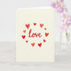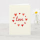 This card features the word “love” written in flowing cursive across the center in deep red ink. Around it, several red hearts are scattered in a loose circle, each one a little different in size and shape. You can see brush-like strokes and slightly uneven edges on the hearts, which makes the design feel human and sincere. The background is a creamy off-white, so the red lettering and hearts stand out without feeling loud. The hearts look like they’re gently floating around the word, adding a calm, affectionate mood. It feels meaningful because it keeps the message simple and direct, like saying what you feel without overthinking it 🥰. The centered red “love” does the talking, while the surrounding hearts add warmth and closeness ❤️. Hope it helps you share your Valentine’s Day feelings with someone you care about.
