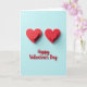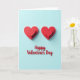 This card shows a soft light blue background with two sets of layered red hearts near the top, like they’re gently floating. Each heart shape has a slight raised look, and the faint shadows underneath add a calm sense of depth. The hearts sit side by side, giving the feeling of two people close together or two friends sharing the day. Below them, the words “Happy Valentine’s Day” are written in red, using a smooth, flowing letter style, centered in the lower half of the card. The matching red text ties in with the hearts and keeps the message easy to spot at a glance. The simple colors and roomy layout make it feel quiet, caring, and easy to give without overthinking it 🥰. It’s a sweet way to say “I’m thinking of you” with warmth and affection ❤️, and it’s perfect for sharing Valentine’s Day sentiments.