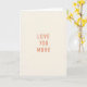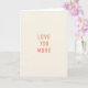 This card keeps things simple and sweet, focusing your attention right on the words ❤️. The background is a soft, creamy off-white with lots of open space, so the message feels calm and easy to take in. In the center, the text reads “LOVE YOU MORE,” stacked vertically with each word on its own line. The letters are a warm coral-orange and look like a straightforward sans-serif style, making it feel friendly and direct. If you look closely, the lettering has a slightly textured, imperfect look, like it was pressed onto the paper, which makes it feel more human and sincere. There’s also a small, subtle signature tucked into the bottom right corner. It’s a meaningful card to give because it says something big without needing extra decoration, and it works for romance or close friendship 🥰. Hope it helps you share Valentine’s Day feelings with someone you care about.
