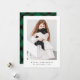 Simple and classic one photo festive green Merry Christmas holiday greeting card features a traditional rustic plaid print on the back and minimal typography on the front.