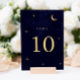 Classic Midnight Celestial Gold Moon Stars Wedding Table Number