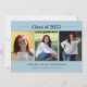 Yes, you can print on the back of your invitation for free! Most designs already have a corresponding design on the back that can be personalized using the Design Tool and going to Layers. This is a great way to communicate more information or further personalize your Classic Minimal 3 Photos Blue 2023 Graduation Invitation. The option is really up to you.
