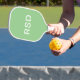 Personalized pickleball paddles make great gifts for all occasions. This design features a simple mint green background with white block-style monogram text. You can customize the text with any initials or wording of your choice.