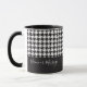 This design features a classic black and white houndstooth pattern. Combined with your own personalized text, this composition creates a modern chic and unique coffee mug.